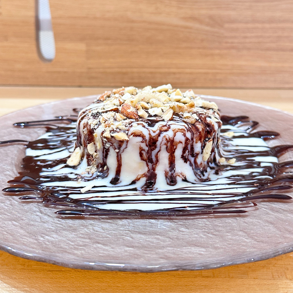 しっとり焼き上げたケーキに熱海カフェ特製のソース。カカオのコク深い甘さのチョコレートソースをたっぷりまとわせました。
